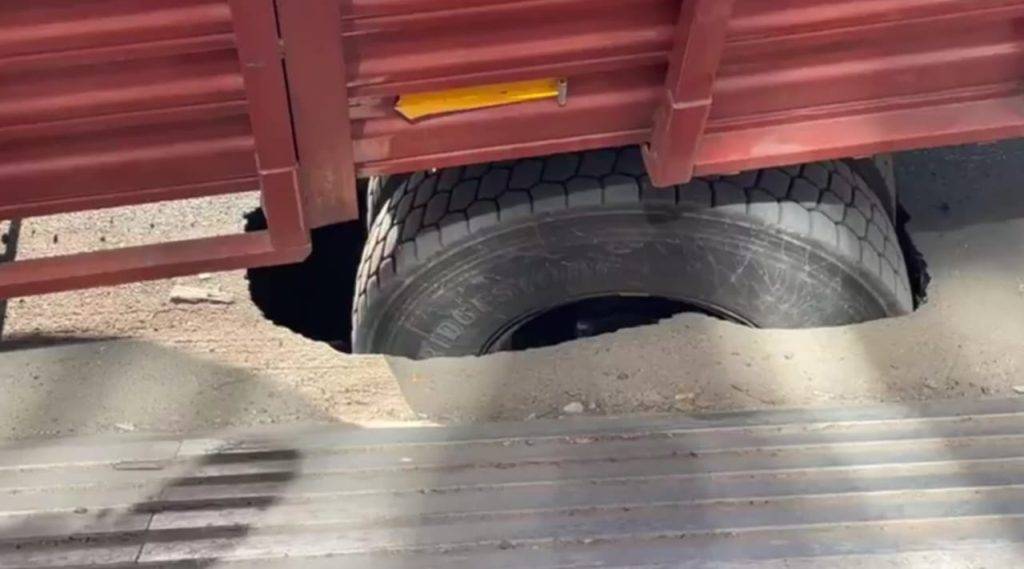 વડોદરા :;શહેરના વિકાસની વાતો વચ્ચે રોડ-રસ્તાની હલકી ગુણવત્તાનો વધુ એક ચોંકાવનારો કિસ્સો સામે આવ્યો છે. આજે, શહેરના અતિવ્યસ્ત મંગલ પાંડે રોડ પર અગોરા મોલની નજીક એક વિશાળ ભુવો પડતાં ભારે હોબાળો મચી ગયો હતો. આ ભુવામાં એક મોટો આઈસર ટેમ્પો અડધો જમીનમાં ગરકાવ થઈ ગયો હતો, જેના કારણે વાહનને ભારે નુકસાન થયું હતું અને ટ્રાફિક જામની સ્થિતિ સર્જાઈ હતી.