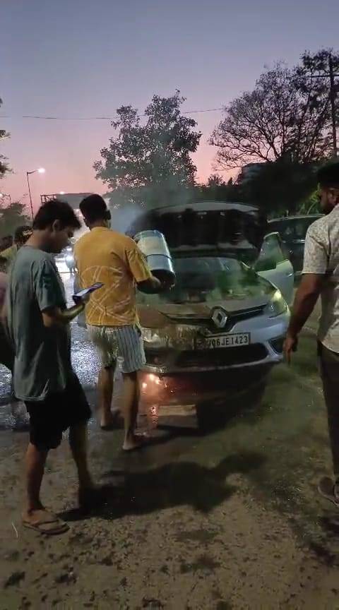 પરિસ્થિતિની ગંભીરતા સમજી કારચાલકે તરત જ ગાડી રોડની બાજુએ ઊભી રાખી હતી અને કારમાં સવાર તમામ લોકો સલામત રીતે નીચે ઉતરી આવ્યા હતા. ત્યારબાદ કારના આગળના ભાગમાં આગ વધુ ફેલાવા લાગી હતી, જેને જોઈ આસપાસના લોકો એકત્ર થયા હતા. લોકોએ પાણીના જગ તેમજ ધૂળ નાખી આગ બુજાવવાનો પ્રયાસ કર્યો હતો.