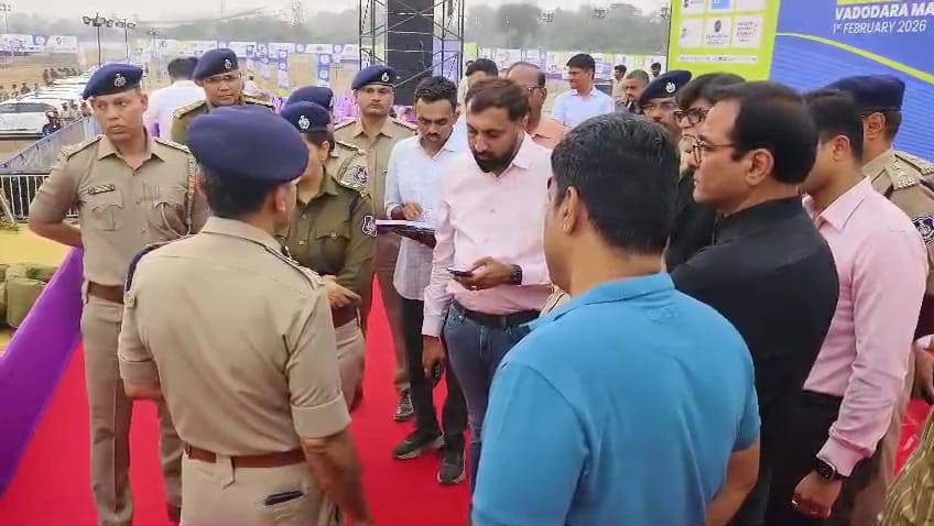 વડોદરા શહેરમાં આજે યોજાનારી આંતરરાષ્ટ્રીય મેરેથોન દોડને લઈને પોલીસ તંત્ર દ્વારા તમામ તૈયારીઓ પૂર્ણ કરી લેવામાં આવી છે. મેરેથોન શાંતિપૂર્ણ અને સુરક્ષિત માહોલમાં સંપન્ન થાય તે માટે પોલીસ કમિશનર નરસિમ્હા કોમારા, નાયબ પોલીસ કમિશનર ડૉ. લીના પાટીલ સહિતના અધિકારીઓએ મેરેથોનના ફ્લેગ ઓફ સ્થળનું પોલીસ કાફલા સાથે નિરીક્ષણ કર્યું હતું.