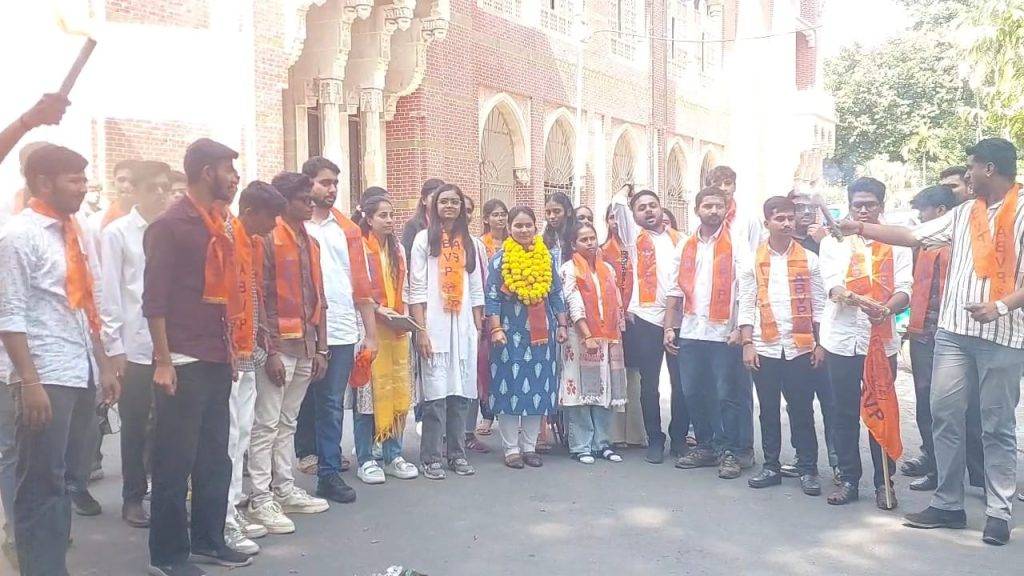 અખિલ ભારતીય વિદ્યાર્થી પરિષદના રાષ્ટ્રીય મંત્રી ક્ષમા શર્મા વડોદરાની એમ.એસ.યુનિવર્સિટીની મુલાકાતે પહોંચ્યા હતા. જ્યાં એબીવીપીના વિદ્યાર્થી કાર્યકર્તાઓ દ્વારા રેલી સાથે ફટાકડા ફોડી તેઓનું ભવ્ય અભિવાદન કરવામાં આવ્યું હતું.
