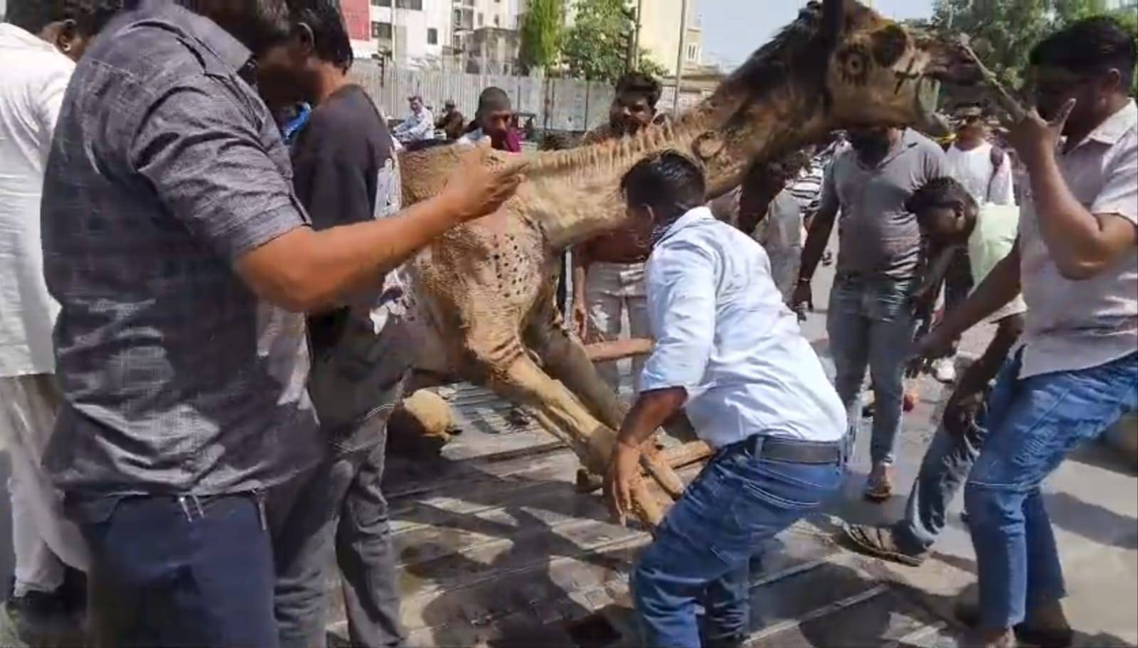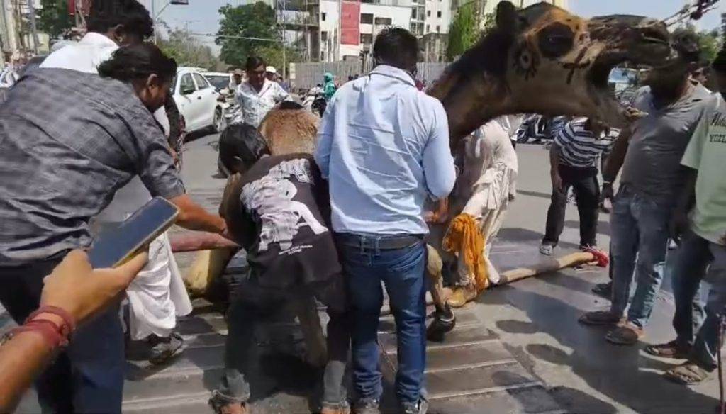 સ્થાનિકોએ મહામહેનતે ઊંટને રેસ્ક્યુ કર્યું: મોટી દુર્ઘટના સર્જાતા રહી ગઈ