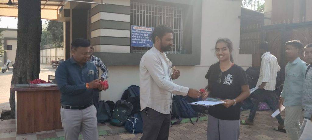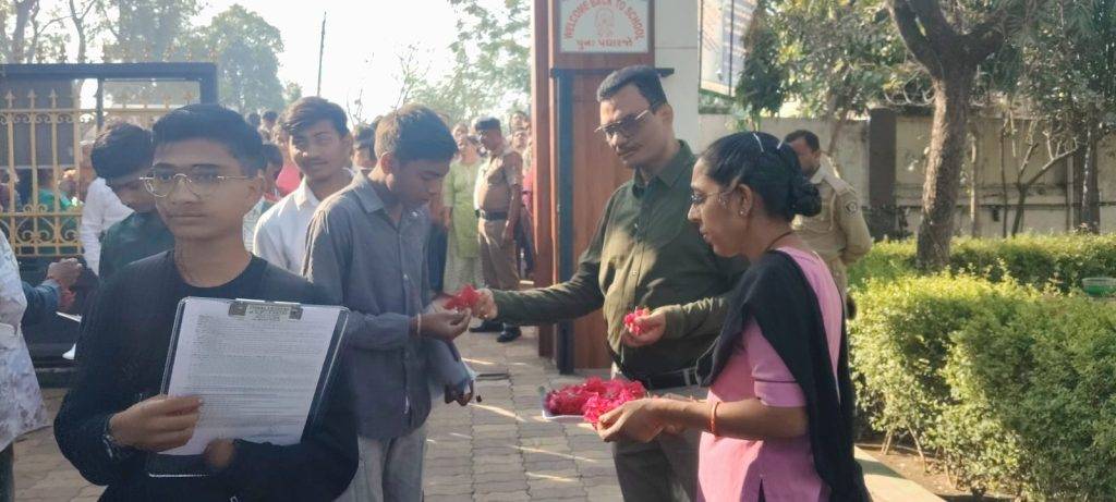 આજ રોજ સવારે 9:15 કલાકે ભાજપના દીપકભાઈ જોશી, શહેર પ્રમુખ કલ્પેશભાઈ પારેખ, કોર્પોરેટર પ્રતીક ઉપાધ્યાય, ટ્રસ્ટી વિરેન્દ્ર મહેતા તેમજ શાળાના આચાર્ય દ્વારા બંને પરીક્ષા કેન્દ્રો પર પરીક્ષાર્થીઓને ફૂલ અને સાકર આપી સ્વાગત કરવામાં આવ્યું અને શુભેચ્છાઓ પાઠવવામાં આવી.