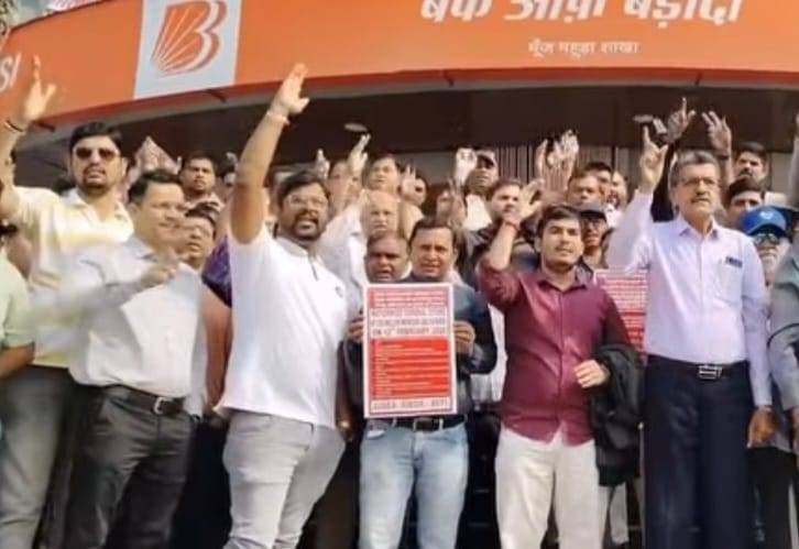 કેન્દ્ર સરકારની આર્થિક અને મજૂર નીતિ સામે બેન્ક કર્મચારીઓની હડતાળ