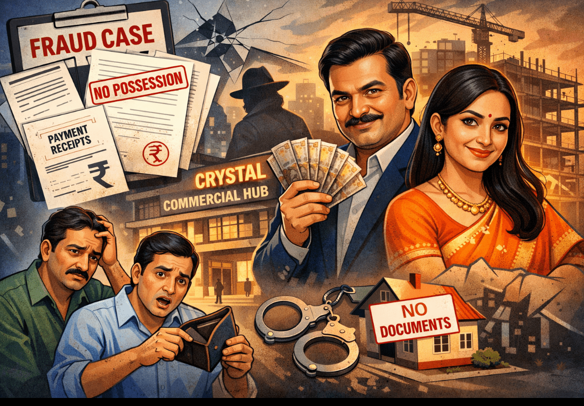 પ્રથમ બનાવમાં વડોદરા શહેરના વારસિયા વિસ્તારની નવયુગ સોસાયટીમાં રહેતા ધર્મેશ જેઠાનંદ લોહાણાએ ફરિયાદ નોંધાવી છે. તેમની ફરિયાદ મુજબ વર્ષ 2015માં કેયા બિલ્ટેક એલએલપીના ભાગીદાર બિલ્ડર મનીષ મહેન્દ્ર પટેલે ખોડીયારનગર ચાર રસ્તા પાસે, અર્થ આઈકોનની સામે ન્યૂ વી.આઈ.પી. રોડ પર ક્રિસ્ટલ પ્રમુખ કોમર્શિયલ હબ નામની દુકાનો તથા ઓફિસોની સ્કીમ લોન્ચ કરી હતી. આ સ્કીમમાં ધર્મેશભાઈ અને તેમના ભાઈ કમલેશભાઈએ ગ્રાઉન્ડ ફ્લોર ઉપર જી/એફ-87, 88, 89 અને 90 નંબરની કુલ ચાર દુકાનો રૂ.86 લાખમાં ખરીદવાનું નક્કી કર્યું હતું. બુકિંગ સહિત અલગ-અલગ તારીખે ચેક દ્વારા રૂ.70.53 લાખ ચૂકવ્યા હોવા છતાં બિલ્ડરે ન તો દુકાનોનું બાંધકામ પૂરું કર્યું છે કે ન તો કબજો તથા દસ્તાવેજ આપી રહ્યા છે. ચૂકવેલ રકમ પણ પરત આપવામાં આવી નથી.