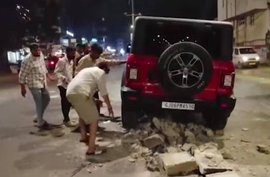 નશામાં ધૂત થાર ચાલકનો આતંક, ગાડી ડિવાઈડર પર ચઢાવી, લોકોમાં ફફડાટ
