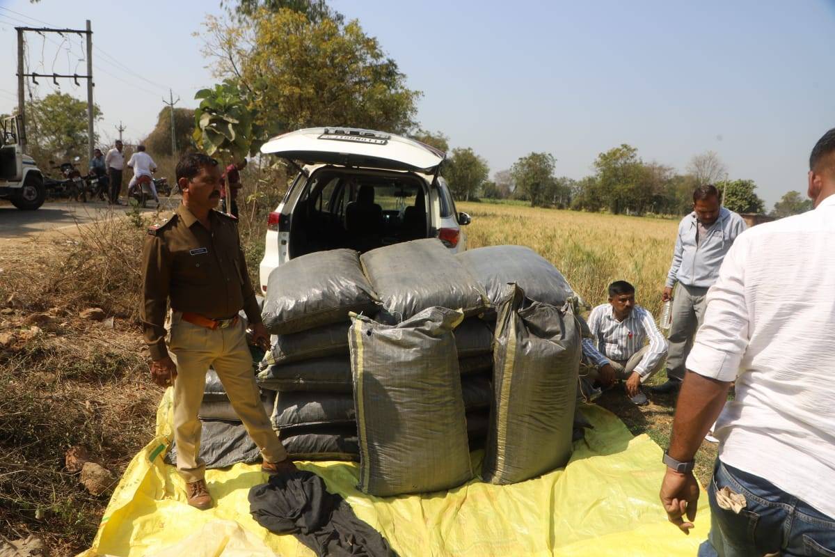 પોલીસે ખાનગી વાહનો દ્વારા પીછો કરતા ચાલકે થોડે અંતરે કાર છોડીને રાત્રીના અંધારામાં ખેતરો તરફ નાસી છૂટ્યો હતો. તપાસ દરમિયાન જાણવા મળ્યું કે કાર પર નંબર પ્લેટ લગાવેલી ન હતી. કારની તલાશી લેતા તેમાં પ્લાસ્ટિકની મીણીઓમાં ભરેલા 26 થેલાઓમાંથી પોષડોડા (અફીણ જીંડવા) મળી આવ્યા હતા.