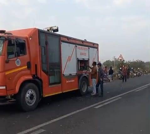 પુલ નીચે કાર ખાબકતાં જ આગમાં ભડથું, ડ્રાઈવર ને ઝોંકુ આવી જતા અથવા ઘન ધુમ્મસના કારણે દૃશ્યતા ઓછી રહેતા કાર પરથી કાબૂ ગુમાવ્યો