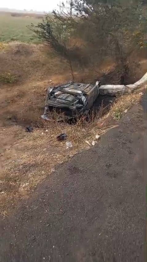 પુલ નીચે કાર ખાબકતાં જ આગમાં ભડથું, ડ્રાઈવર ને ઝોંકુ આવી જતા અથવા ઘન ધુમ્મસના કારણે દૃશ્યતા ઓછી રહેતા કાર પરથી કાબૂ ગુમાવ્યો