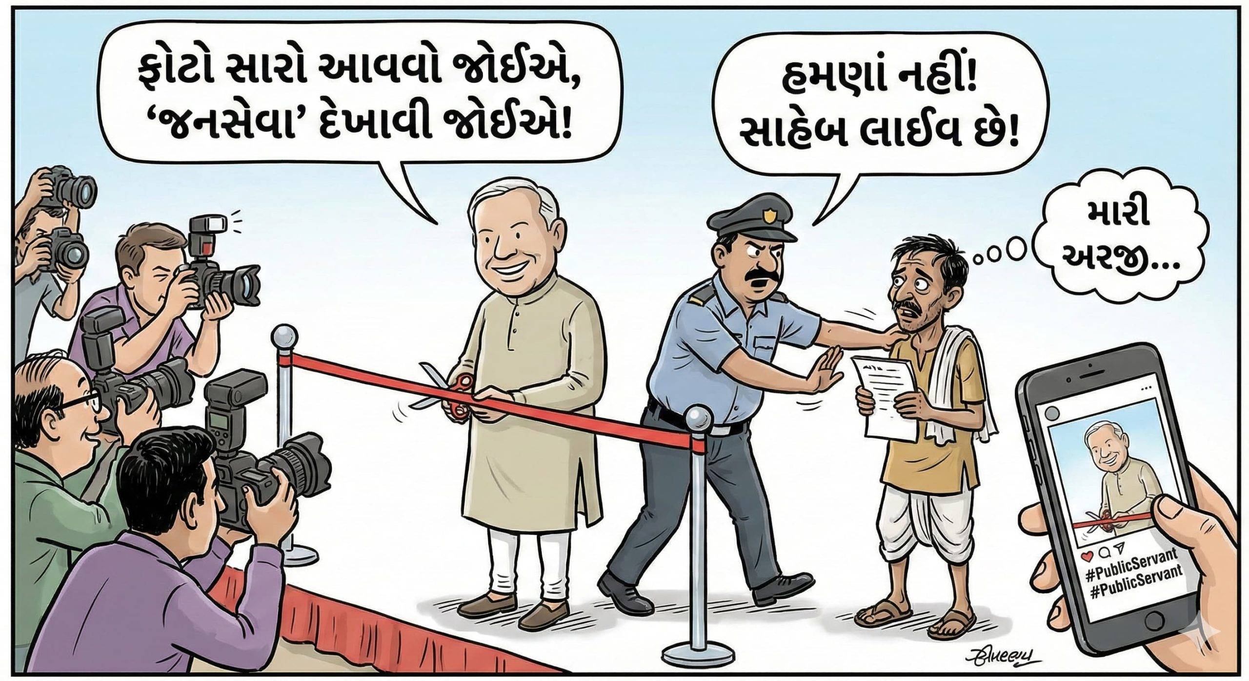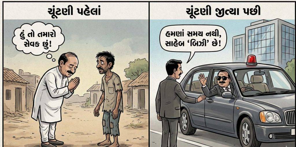 ચૂંટણી સમયે જે નેતાને સામાન્ય મતદારના ઘરે ચા પીવામાં નાનમગોધરામાં નથી લાગતી તે જ નેતા ચૂંટાયા પછી કાર્યકરો કે નાગરિકોને મળવા માટે અચાનક “હાઈ-પ્રોફાઈલ” થઈ જાય છે. વર્ષોથી પક્ષ સાથે જોડાયેલા પાયાના કાર્યકરો જ્યારે રજૂઆત કરવા જાય ત્યારે તેમને કલાકો સુધી રાહ જોવડાવવી અને છેલ્લે “મારે અચાનક બહાર જવાનું છે” કે “સાહેબ અત્યારે અગત્યની મીટીંગ અથવા કાર્યક્રમમાં છે” તેમ કહીને રવાના કરી દેવા, એ હવે નેતાઓની આદત બની ગઈ છે. શું સત્તા મળ્યા પછી સંવેદના મરી જાય છે?આજના નેતાઓ જમીન પર ઓછા અને સોશિયલ મીડિયા પર વધુ દેખાય છે. ફેસબુક અને ઇન્સ્ટાગ્રામ પર રોજેરોજ હારતોરા પહેરતા, રિબિન કાપતા અને સ્ટેજ પર ભાષણ આપતા ફોટા મુકાય છે. પણ હકીકત એ છે કે આ ફોટાઓમાં ક્યાંય સામાન્ય જનતા સાથેનો જીવંત સંવાદ નથી હોતો. જનસંપર્ક માત્ર ‘ઈવેન્ટ’ અને ‘ફોટોગ્રાફી’ બનીને રહી ગયો છે.નેતાઓ એ ભૂલી જાય છે કે વૃક્ષ ત્યારે જ લીલુંછમ રહે છે જ્યારે તેના મૂળિયાં એટલે કે કાર્યકરો મજબૂત હોય. જો નેતાની આસપાસ માત્ર “હાજી હા” કરનારા લોકો જ રહેશે અને સાચા કાર્યકરોનું સ્વમાન ઘવાશે તો એ દિવસ દૂર નથી જ્યારે સત્તાની ઈમારત ડગમગી જશે.
