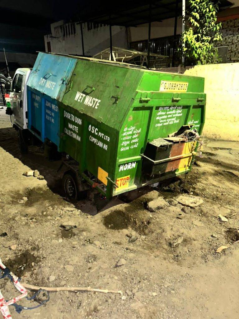 VMCની કચરા કલેક્શનની ગાડી ખાડામાં ફસાઈ