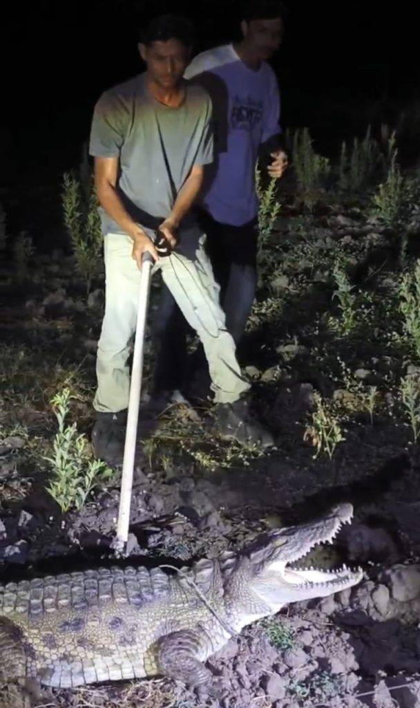 રેસ્ક્યુ ટીમે ગામલોકોના સહકારથી મગરને સુરક્ષિત રીતે પકડ્યો