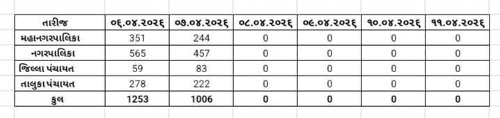 - મહાનગરપાલિકા (વોર્ડ)માં 6 એપ્રિલ ના રોજ 351 જ્યારે 7 એપ્રિલના રોજ 244 મળી કુલ 595 ફોર્મ નું વિતરણ થયું હતું.