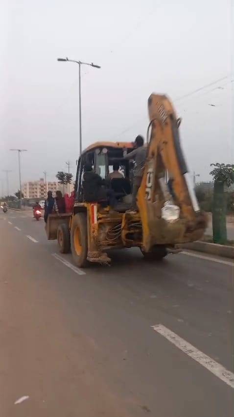વડોદરા શહેર અને હાઈવે પર અકસ્માતોના બનાવોમાં ધરખમ વધારો થયો છે. ટ્રાફિક નિયમોને નેવે મૂકી વાહનો હંકારતા ચાલકોના પાપે અનેક નિર્દોષ નાગરિકોએ જીવ ગુમાવ્યા છે. તેમ છતાં આજે પણ ક્યાંકને ક્યાંક ચાલકો , પોલીસ વિભાગ અને આરટીઓની બેદરકારી જોવા મળી રહી છે. કાયદો હોવા છતાં કેટલાક કટકી બાજો અને હપ્તાખોરીના રાજના કારણે વાહન ચાલકો બેફામ બન્યા છે. અને પોતે પોતાનો અને બીજાના જીવ પણ જોખમમાં મૂકી રહ્યા છે. તેવા એક જોખમી સવારીનો વીડિયો આજે વાયરલ થયો છે. શહેરના પૂર્વ વિસ્તાર ખોડિયાર નગર ચાર રસ્તાથી દરજીપૂરા હાઈવે તરફ જવાના માર્ગે પસાર થઈ રહેલા એક જેસીબીમાં આગળ અને પાછળ સંખ્યાબંધ શ્રમિકોને બેસાડી જોખમી સવારી કરવામાં આવી હતી. જેનો વીડિયો નજીકમાંથી પસાર થતા એક જાગૃત નાગરિકે ઉતારી વાયરલ કર્યો હતો. આટલા બધા શ્રમિકોને જેસીબીમાં બેસાડી પસાર થવા છતાં કોઈપણ ટ્રાફિક પોલીસ કર્મીની આની પર નજર ના પડી એ એક મોટો પ્રશ્ન છે. જો આ જેસીબીથી કોઈ અકસ્માત કે દુર્ઘટના સર્જાત તો જવાબદાર કોણ ? અગાઉ પણ ઘણી વખત આવી જોખમી સવારીના વીડિયો વાયરલ થયા છે. જોકે પોલીસ દ્વારા કોઈ નક્કર કાર્યવાહી નહિ કરવામાં આવતા આજે પણ આ જોખમી સવારીનો સિલસિલો યથાવત જોવા મળ્યો છે.