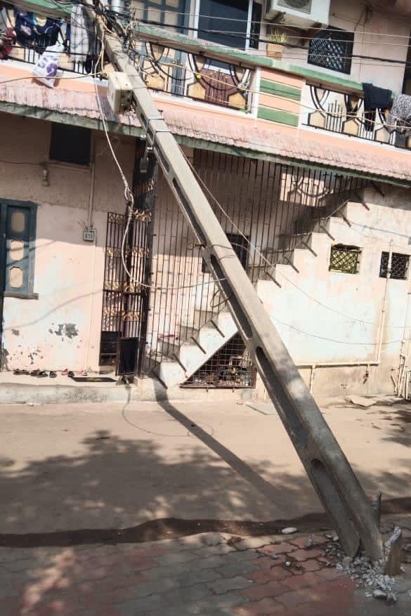 નગરમાં જોખમી વીજ પોલને લોખંડના સપોર્ટથી ઉભા રખાયા