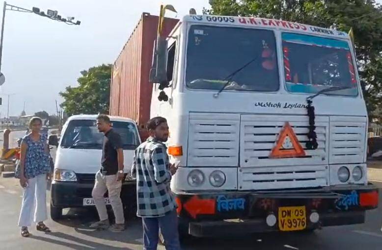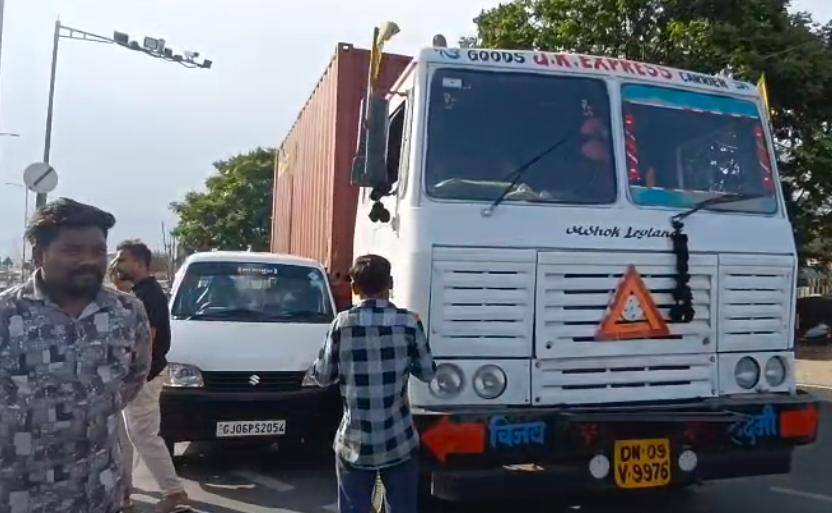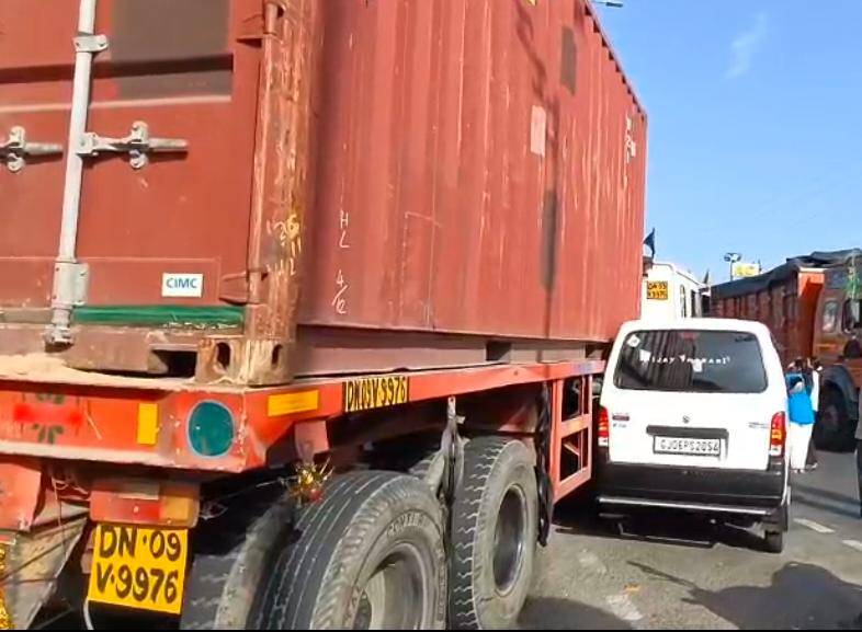 ભારે વાહનોના કારણે થરવાસા ચોકડી ફરી રક્તરંજિત થતા રહી ગઈ, કારને ભારે નુકશાન