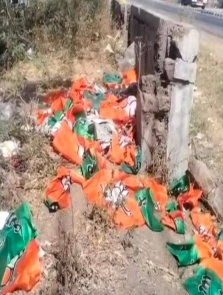 નર્મદા કોલોની પાસે કેસરિયા ધ્વજની દુર્દશા જોઈ પાયાના કાર્યકરોની આંખો ભરાઈ આવી, ષડયંત્ર કે બેદરકારી ? તપાસની પ્રબળ માંગ