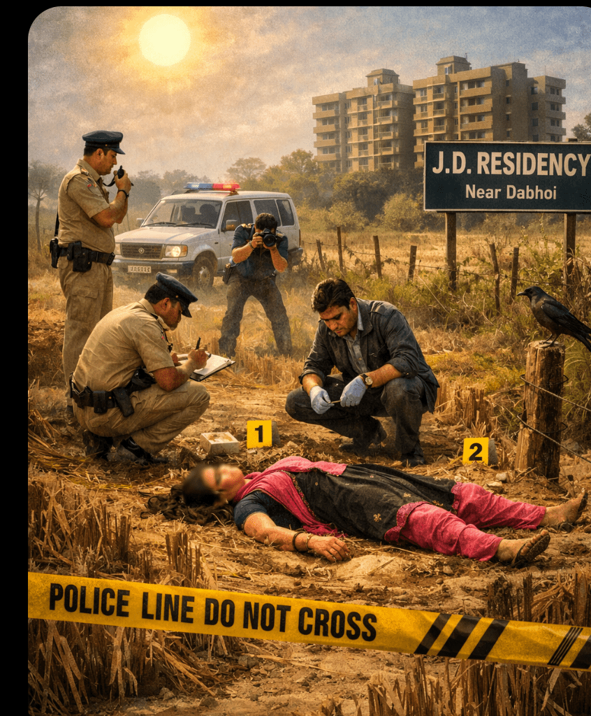 ડભોઈ નજીક ખેતરમાં અજાણી મહિલાનું શંકાસ્પદ મોત, વિસ્તારમાં કુતૂહલ
