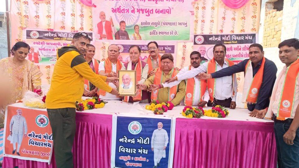 નરેન્દ્ર મોદી વિચાર મંચ દ્વારા હાલોલ તાલુકાના ઊંડાણ વાળા વિસ્તારમાં બાપોટીયા ગામ ખાતે સ્વદેશી અપનાવો અને સંસ્કૃતિ બચાવો જનજાગૃતિ કાર્યક્રમ યોજાયો હતો.