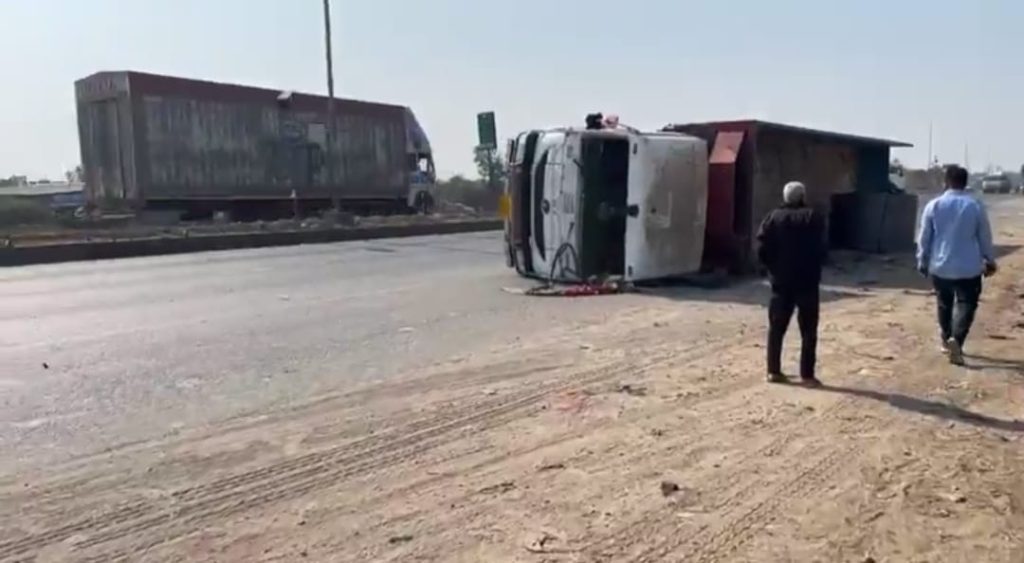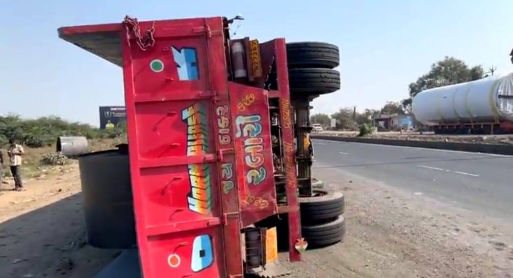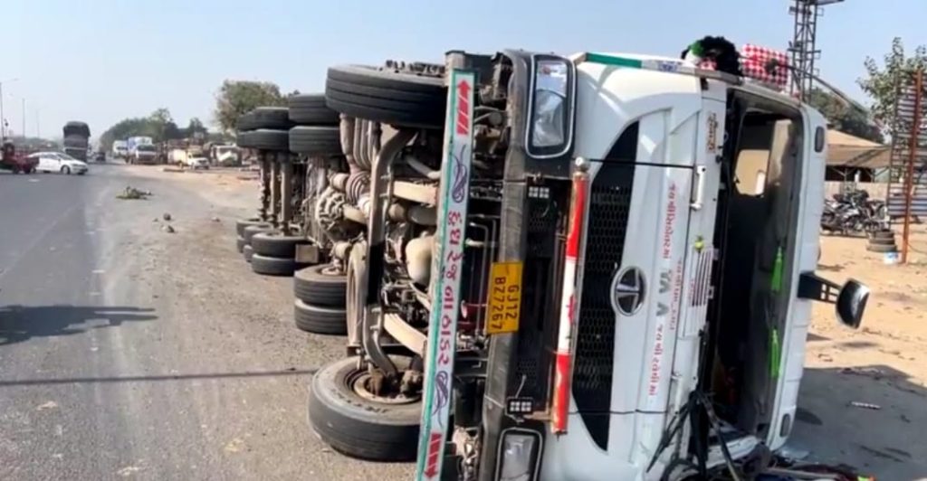 અચાનક બ્રેકના કારણે ટ્રકનું સંતુલન બગડ્યું