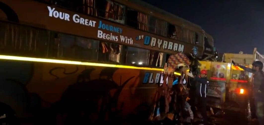 લકઝરીનો આગળનો ભાગ કાપી મૃતદેહ બહાર કાઢ્યો,અકસ્માતના કારણે ટ્રાફિક જામ :