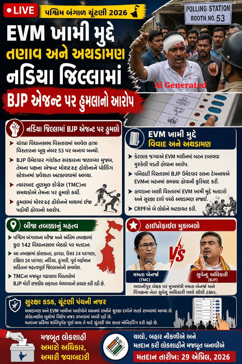 EVM ખામી મુદ્દે તણાવ, નડિયા જિલ્લામાં BJP એજન્ટ પર હુમલાનો આરોપ