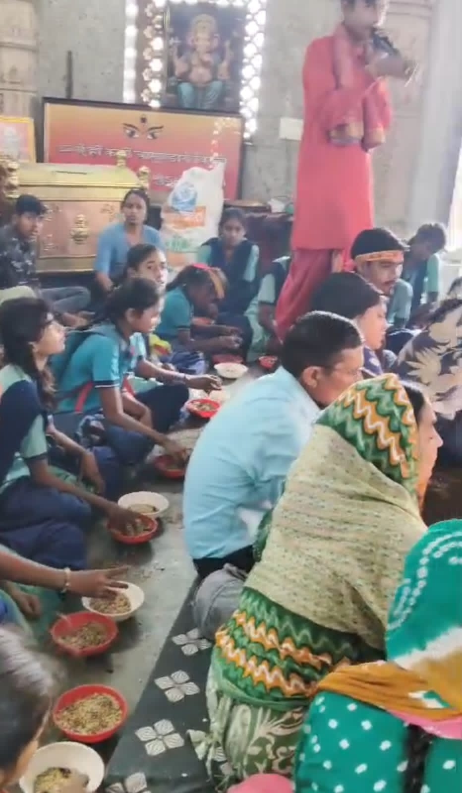 નાનાં ભૂલકાં વિદ્યાર્થીઓએ ભક્તિભાવથી આહુતિ આપતાં મંદિર પરિસરમાં ભક્તિ અને શ્રદ્ધાનો માહોલ છવાઈ ગયો હતો. આ ધાર્મિક કાર્યક્રમમાં શાળાના તમામ શિક્ષકો તેમજ મોટી સંખ્યામાં વિદ્યાર્થીઓ જોડાયા હતા.