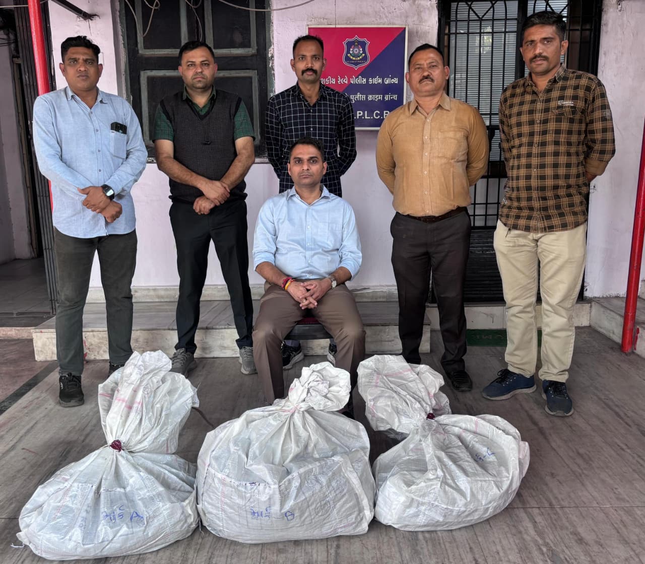 પુરી–અમદાવાદ એક્સપ્રેસમાંથી રૂ. 12.62 લાખનો ગાંજાનો બિનવારસી જથ્થો ઝડપાયો