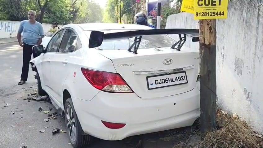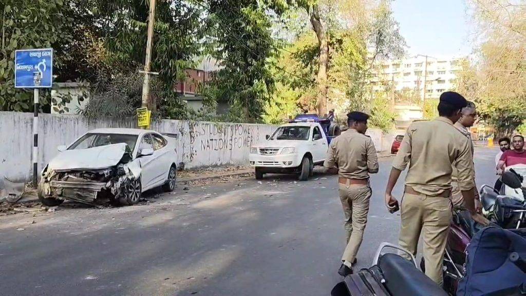 મહારાજા સયાજીરાવ યુનિવર્સીટીના પેવેલિયન મેદાન પાસે બેફામ કારના ચાલકે અકસ્માત સર્જ્યો હતો. કાર એટલી જોરદાર સ્પીડમાં હતી કે, પેવેલિયનની દિવાલ તોડીને થાંભલા સાથે અથડાઈ ગઈ હતી. સર્જાયેલા અકસ્માતમાં કારના આગળના બોનેટ ઉડી ગયા હતા અને કુરચે-કુર્ચા થઈ ગયા હતા. ડ્રાઇવરની સીટની બંને એરબેગ્સ ખુલી ગઈ હતી. અકસ્માતમાં કાર ચાલક ઘાયલ થયો હતો. બનાવને પગલે યુનિવર્સીટી પેવેલિયન સ્ટાફ સહિત પોલીસ આવી પહોંચી હતી અને ઈજાગ્રસ્ત યુવકને સારવાર માટે ખસેડયો હતો. યુનિવર્સિટીના સુપરવાઇઝર હેમંત પ્રજાપતિએ જણાવ્યું હતું કે, કાર ચાલક સ્પીડમાં હતો અને પેવેલિયનની દિવાલ તોડી નાખી છે. અકસ્માત કેવી રીતે થયો તે અમને જાણ નથી. ઘટના સ્થળે કાર માલિકનો મિત્ર ભાવેશ પણ આવી પહોંચ્યો હતો. તેણે જણાવ્યું હતું કે, કાર કોણ ચલાવતું હતું તે જાણ નથી. કારમાં બેથી ત્રણ જણા હતા. કારનું સ્ટેયરિંગ લોક થઈ ગયું હોય તેમ લાગે છે. સદનસીબે અકસ્માતમાં મોટી જાનહાનિ થતા ટળી હતી. સમગ્ર મામલે સયાજીગંજ પોલીસે આગળની કાર્યવાહી હાથધરી હતી.