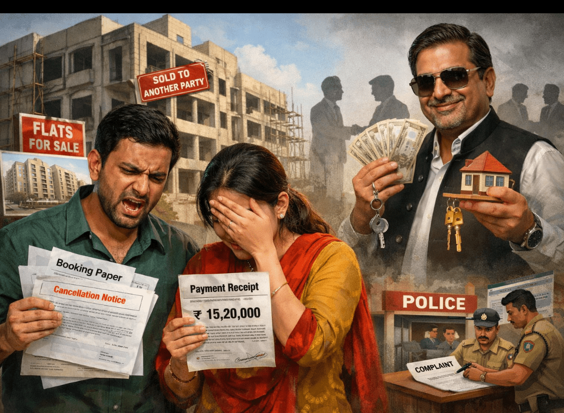 વડોદરાના તરસાલી વિસ્તારમાં “સમર્પણ ડેવલોપર્સ” દ્વારા લોન્ચ કરાયેલી ફ્લેટ સ્કીમમાં છેતરપિંડી નો ચોંકાવનારો કિસ્સો સામે આવ્યો છે. બિલ્ડર જતીન શાંતિલાલ પંચોલી પર ફ્લેટ બુકિંગના બહાને લાખો રૂપિયા વસૂલ કરીને તે જ ફ્લેટ અન્ય વ્યક્તિને વધુ કિંમતે વેચી દેવાનો આરોપ લાગ્યો છે.