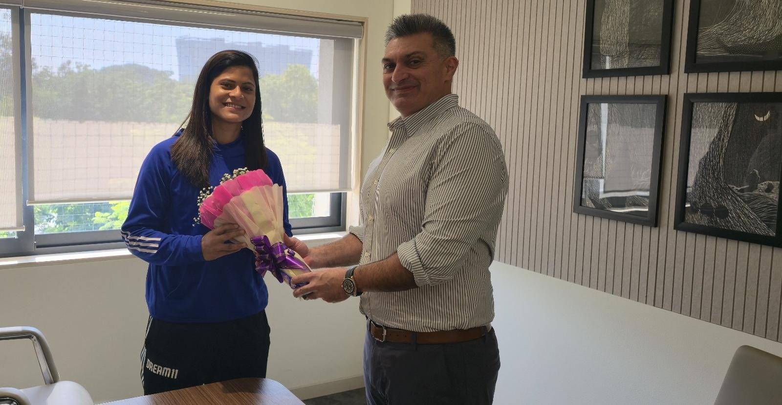 વડોદરા, તા. ૧૩: વિશ્વ વિજેતા ભારતીય મહિલા ક્રિકેટ ટીમની સ્ટાર સ્પિનર રાધા યાદવે આજે એલેમ્બિક ગ્રાઉન્ડ ખાતે બરોડા ક્રિકેટ એસોસિએશન (બીસીએ)ના પ્રમુખ પ્રણવ અમીનની મુલાકાત લીધી હતી. આ મુલાકાતને વડોદરામાં મહિલા ક્રિકેટના વિકાસ માટે એક મહત્વપૂર્ણ ક્ષણ ગણીને જોવામાં આવી રહી છે.