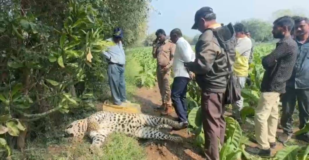 ખેતરની વાડ પાસે મળેલો આશરે 5 વર્ષનો દીપડો – મોતનું કારણ અકબંધ, ફોરેસ્ટ વિભાગે પોસમોર્ટમ હાથ ધર્યું