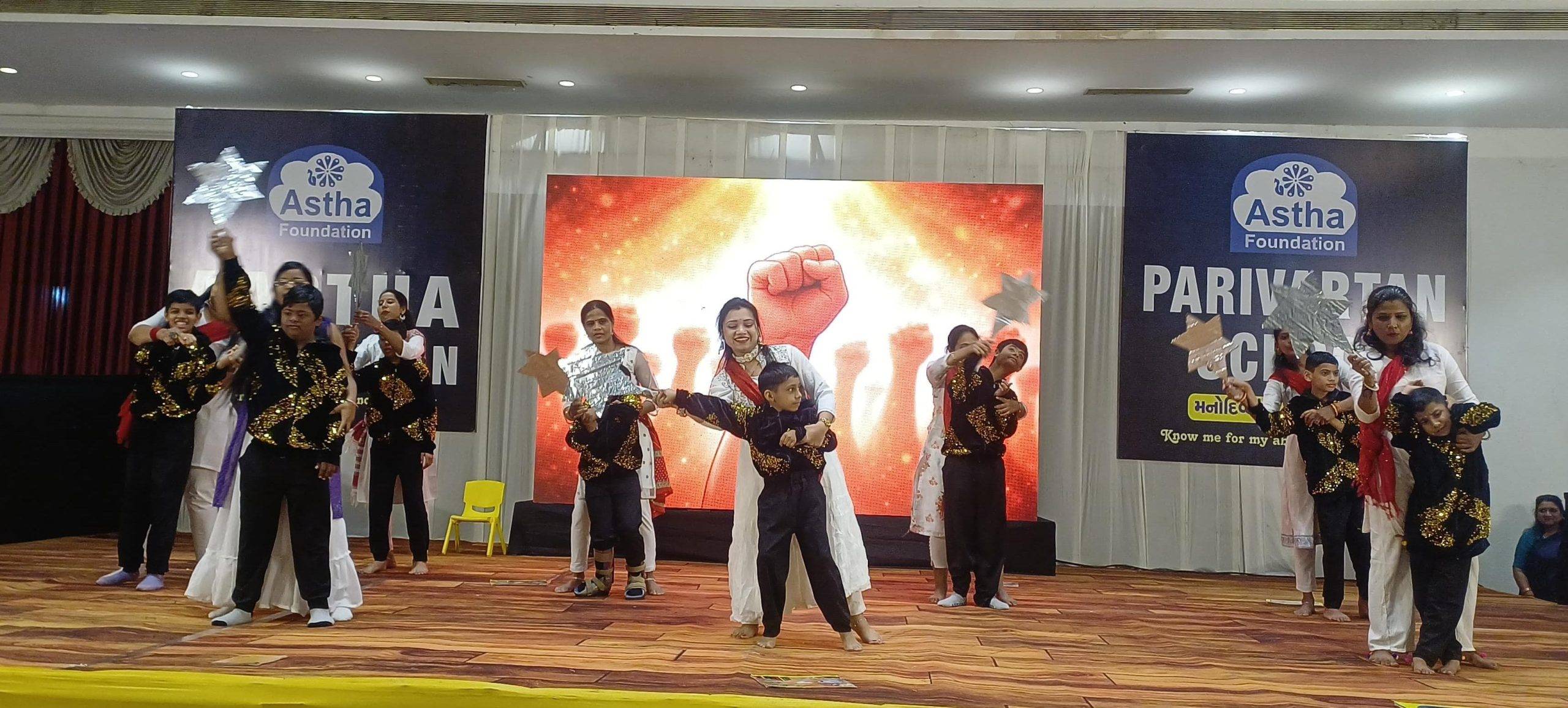 મનોદિવ્યાંગ બાળકોના સર્વાંગી વિકાસના આશય સાથે છેલ્લા ૧૫ વર્ષથી શહેરના મહાવીર હોલ ચાર રસ્તા વિસ્તારમાં આવેલી આસ્થા ફાઉન્ડેશન સંચાલિત પરિવર્તન સ્કૂલ ફોર સ્પેશ્યલી એબલ્ડ દ્વારા મનોદિવ્યાંગ બાળકો માટે શિક્ષણ અને તાલીમ આપવામાં આવે છે. શાળાના વાર્ષિકોત્સવ પ્રસંગે મનોદિવ્યાંગ બાળકો દ્વારા મહિલા રમતવીરોને ટ્રિબ્યૂટ આપતા નૃત્ય સહિત ૧૦થી વધુ ઉત્સાહજનક અને ભાવસભર પર્ફોમન્સ રજૂ કરવામાં આવ્યા હતા.