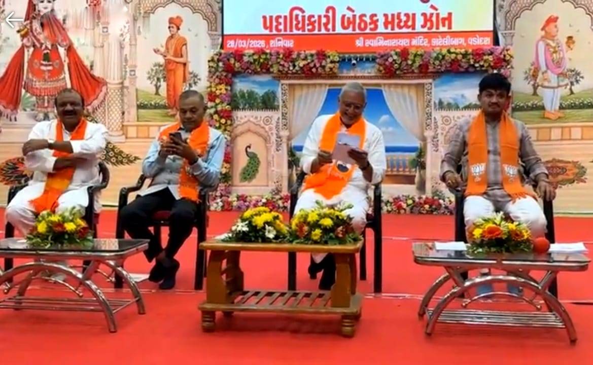 વડોદરા શહેરના કારેલીબાગ વિસ્તારમાં સ્વામિનારાયણ મંદિરના પ્રાંગણમાં મધ્ય ગુજરાત પ્રદેશ ભાજપની મહત્વપૂર્ણ સંગઠન બેઠક યોજાઈ હતી. આગામી સ્થાનિક સ્વરાજ્યની ચૂંટણીઓના પડઘમ વચ્ચે સંગઠનને વધુ મજબૂત બનાવવા આ બેઠકનું આયોજન કરવામાં આવ્યું હતું.