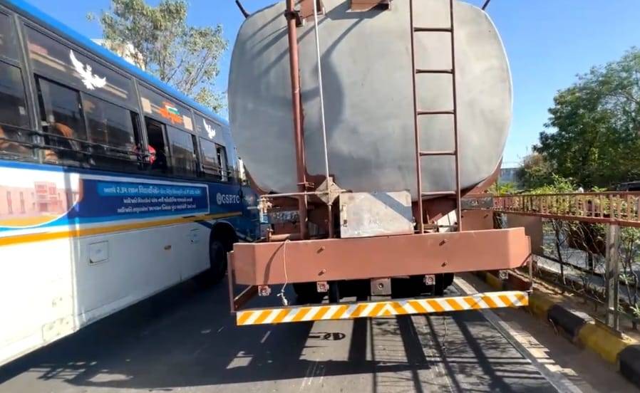 અત્રે મહત્વની બાબત એ છે કે, શહેરમાં આજે પણ ભારદારી વાહનોનો ત્રાસ યથાવત જોવા મળી રહ્યો છે. માણેજા ક્રોસિંગ પાસે નંબર પ્લેટ વિનાના ટેન્કર ચાલકે અકસ્માત સર્જ્યો હતો. અકસ્માત સર્જી ઘટના સ્થળેથી ચાલક ફરાર થઈ ગયો હતો. બનાવને પગલે સ્થાનિક પોલીસ ઘટના સ્થળે આવી પહોંચી હતી અને ટેન્કર કબજે કરી ફરાર થયેલા ચાલકની શોધખોળ હાથ ધરી છે.