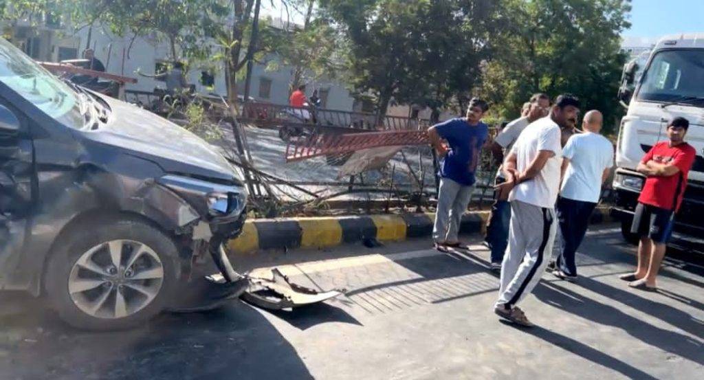 માણેજા ક્રોસિંગ પાસે ટેન્કરે પાછળથી ટક્કર મારતા કાર ડિવાઈડર પર ચડી ગઈ, ચાલક ફરાર