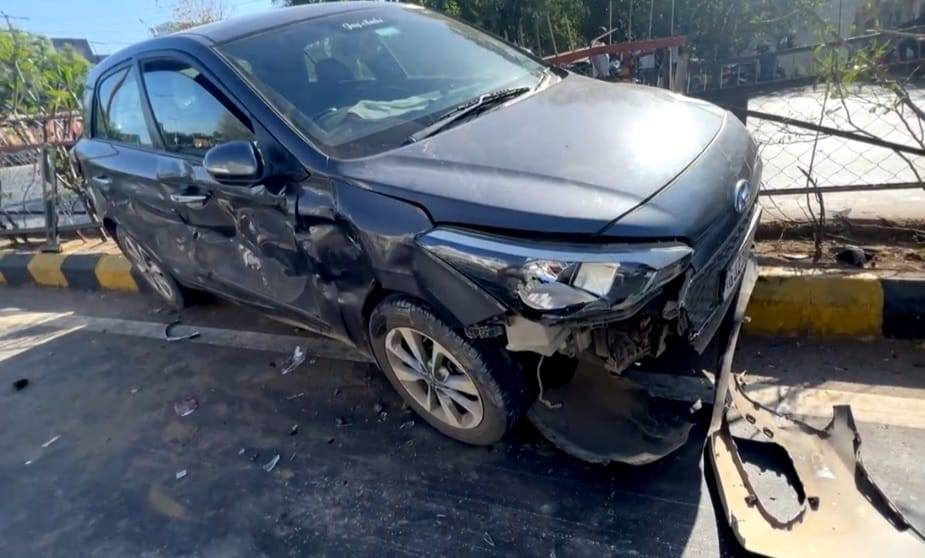 માણેજા ક્રોસિંગ પાસે ટેન્કરે પાછળથી ટક્કર મારતા કાર ડિવાઈડર પર ચડી ગઈ, ચાલક ફરાર