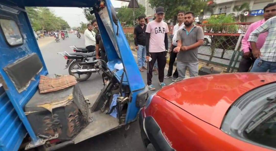 થ્રી વ્હીલર ટેમ્પો પાછળ ત્રણ કાર વારાફરતી ભટકાઈ, ટેમ્પો ચાલક ફરાર