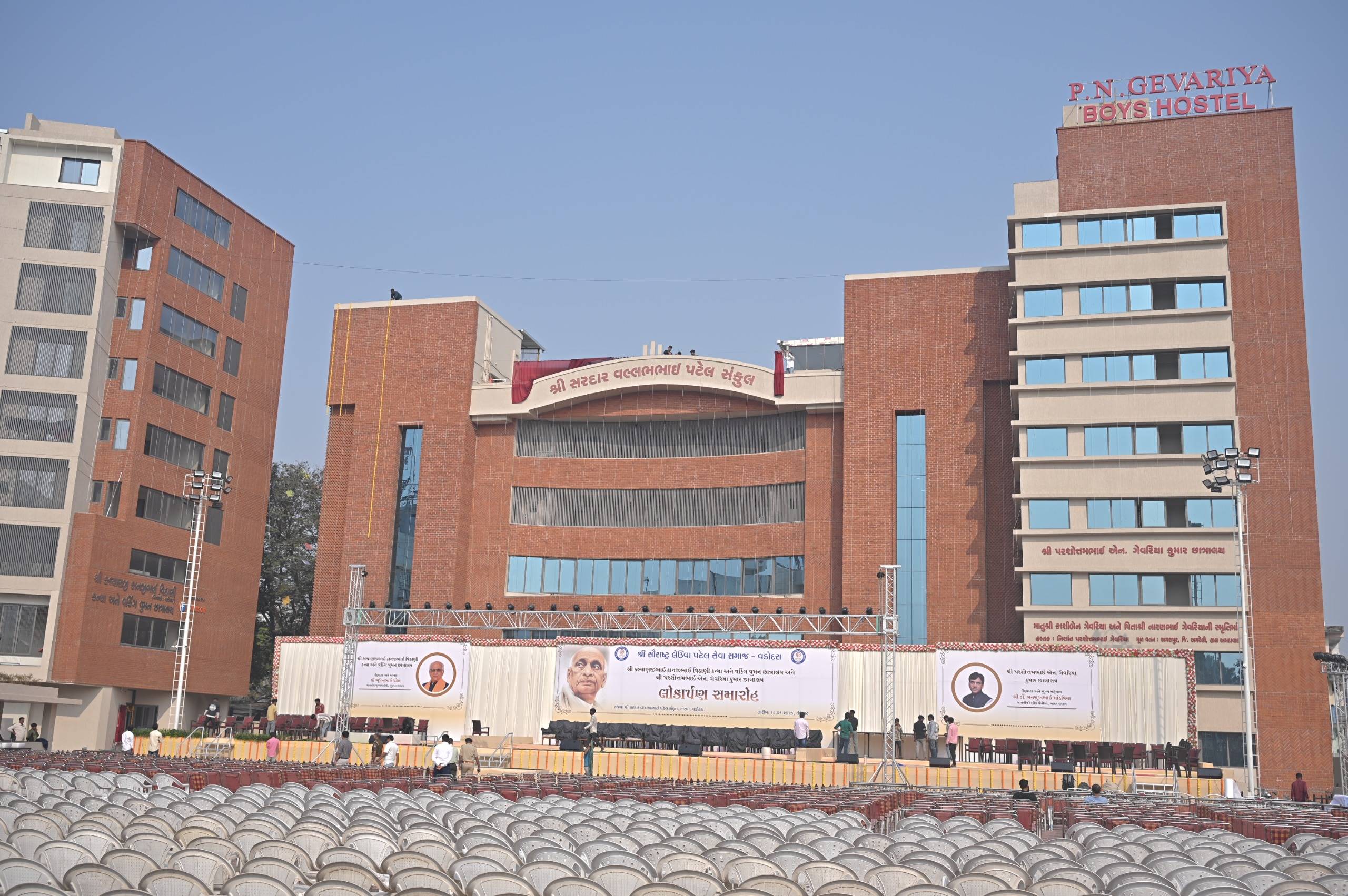 પ્રાસંગિક પ્રવચન કાનજીભાઈ ભાલાળાએ કર્યું હતું અને સૌરાષ્ટ્ર લેઉવા પટેલ સમાજ વડોદરાના પ્રમુખ પી.પી. કાનાણી દ્વારા પ્રવૃત્તિની રૂપરેખા રજૂ કરવામાં આવી હતી. ૨૫ લાખ, ૫૧ લાખ તથા એક કરોડ અને તેનાથી વધુ દાન કરનારાઓનું સન્માન કરવામાં આવ્યું હતું. ૨.૨૧ કરોડના દાતા પરસોતમભાઈ ગેવરીયાનું વિશિષ્ટ સન્માન કરવામાં આવ્યું હતું.