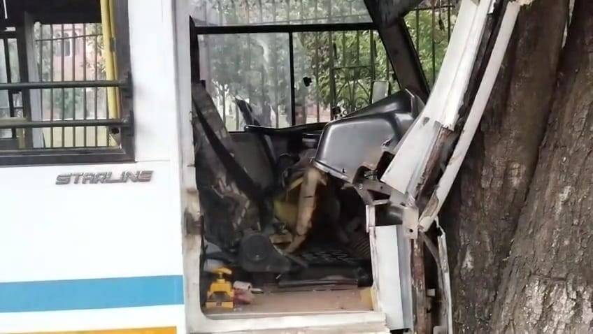 વડોદરા શહેરમાં એક મોટી દુર્ઘટના થતા ટળી હતી. સીટી બસના ચાલકને ખેંચ આવતા બસ ધડાકાભેર યુનિવર્સિટી બહાર આવેલા એક ઝાડ સાથે ભટકાઈ હતી. સર્જાયેલા અકસ્માતમાં ડ્રાઇવર સ્ટેરિંગ નીચે ફસાઈ ગયો હતો. બનાવને પગલે તાત્કાલિક ઘટના સ્થળે યુનિવર્સિટીના વિદ્યાર્થીઓ મદદ માટે દોડી આવ્યા હતા. તેમજ ફાયર બ્રિગેડની મદદથી ચાલકને સહી સલામત રીતે બહાર કાઢી 108 મારફતે સારવાર અર્થે ખસેડવામાં આવ્યો હતો. બીજી તરફ બસમાં સવાર મુસાફરોના જીવ પડીકે બંધાયા હતા.