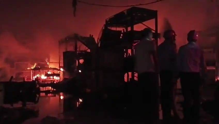 જીઆઇડીસી સહિતના ફાયર સ્ટેશન ના જવાનોએ કલાકો સુધી પાણીનો મારો ચલાવી પરિસ્થિતિ સંભાળી લીધી :