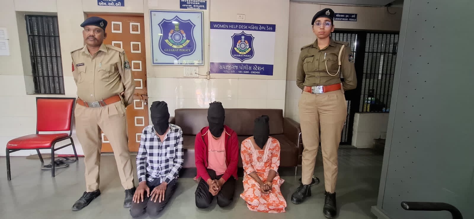 આ ઘટનાની તપાસ દરમિયાન સયાજીગંજ પોલીસ મથકની ટીમે હ્યુમન રિસોર્સ અને ટેકનિકલ સોર્સના આધારે આરોપીઓની ઓળખ કરી અને એમ.એસ. યુનિવર્સિટી એક્સપરિમેન્ટલ સ્કૂલના ગેટ પાસેથી તેમને ઝડપી પાડ્યા હતા. ધરપકડ કરાયેલા આરોપીઓમાં દિવાળીપુરા અંબિકાનગર વિભાગ-૨માં રહેતો રાહુલ ઉર્ફે પલ્લો રાઠોડ, ગોત્રી ગિરધરનગરમાં રહેતો ગૌતમ પરમાર અને પરશુરામ ભઠ્ઠાની જામવાડી ખાતે રહેતી કવિતા ઉર્ફે કવુ કાળેનો સમાવેશ થાય છે.
