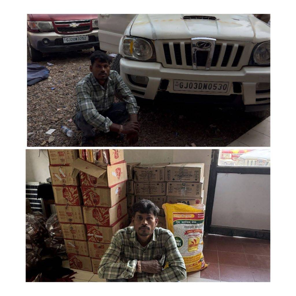 જે ગાડીની તપાસ કરતાં વિદેશી દારૂ ના બોટલ અને બીયર ના ટીન મળી કુલ નંગ ૧૬૮૬ જેની કિમત ₹ ૪ ,૦૬૭ ,૨૨ /- , મોબાઈલ નંગ ૧ જેની કિંમત ₹ ૩૦૦૦ /- અને મહીન્દ્રા કંપની ની સ્કોર્પિયો જેની કિંમત ₹ ૧, ૫૦ ,૦૦૦ /- કુલ મળી ₹ ૫, ૫૯ ,૭૨૨નો મુદ્દામાલ ઝડપી પ્રોહિબિસન ની કલમો લગાડી તપાસ હાથ ધરી હતી