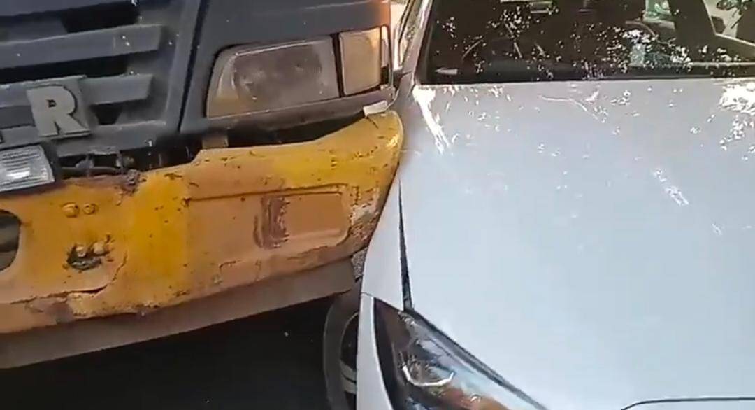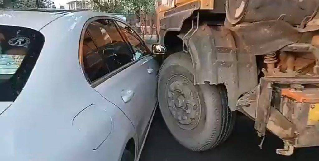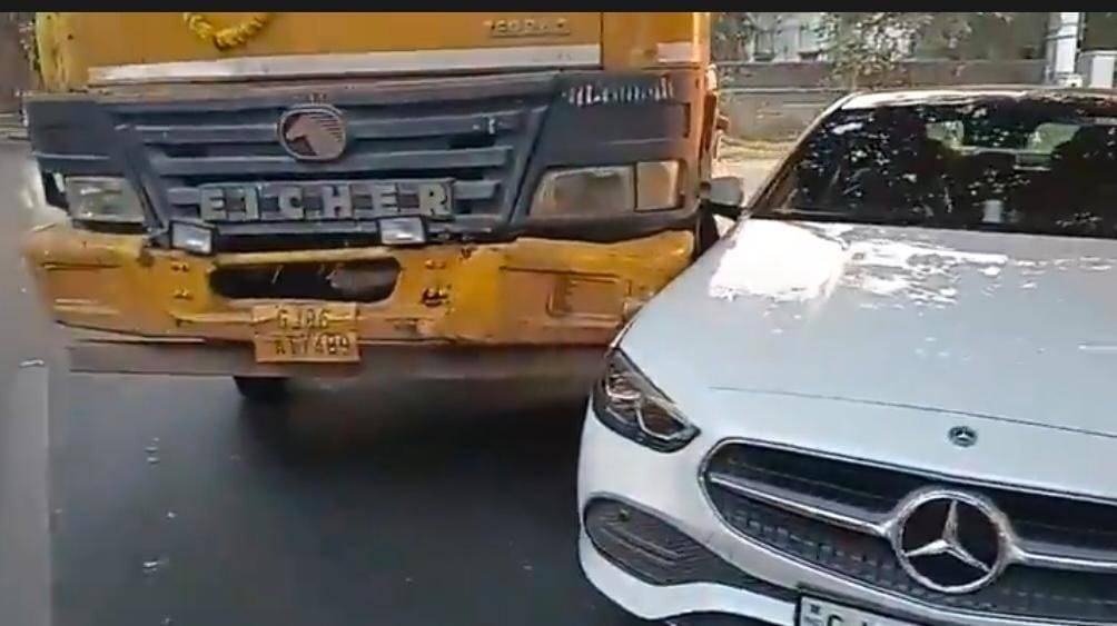 સેન્ટ્રલ જેલમાં ચાલતી કામગીરી માટે આવેલી ટ્રકે કારને અડફેટે લેતા લોકોના જીવ તાળવે ચોંટ્યા