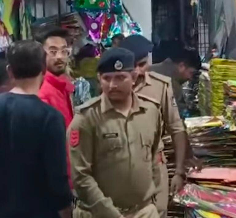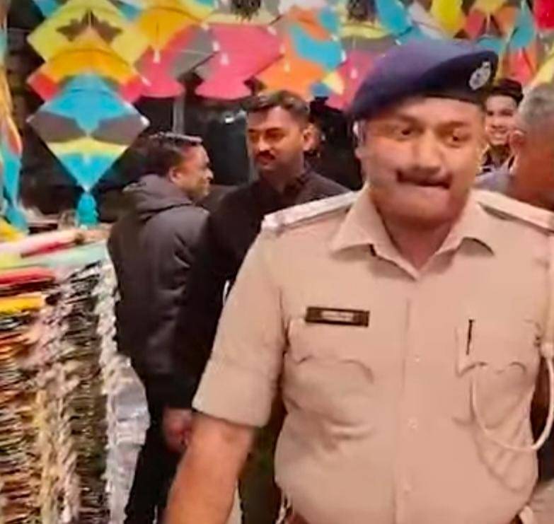 વડોદરાના માંડવી પતંગ બજારમાં વાડી પોલીસનું ચેકિંગ.