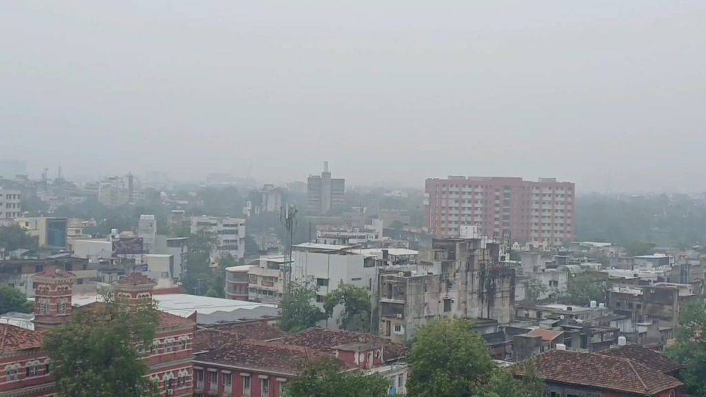 છેલ્લા ત્રણ-ચાર દિવસથી વધતી ઠંડી સાથે હવામાં ફેલાયેલું પ્રદૂષણ જાણે અચાનક જમીન સપાટી નજીક આવી ગયું હોય તેવી સ્થિતિ સર્જાઈ હતી. આજે વહેલી સવારે સૂર્યોદય બાદ પણ શહેરમાં ધૂંધળું વાતાવરણ યથાવત રહ્યું હતું અને અંધકાર છવાયો હોય તેવી લાગણી થઈ હતી.