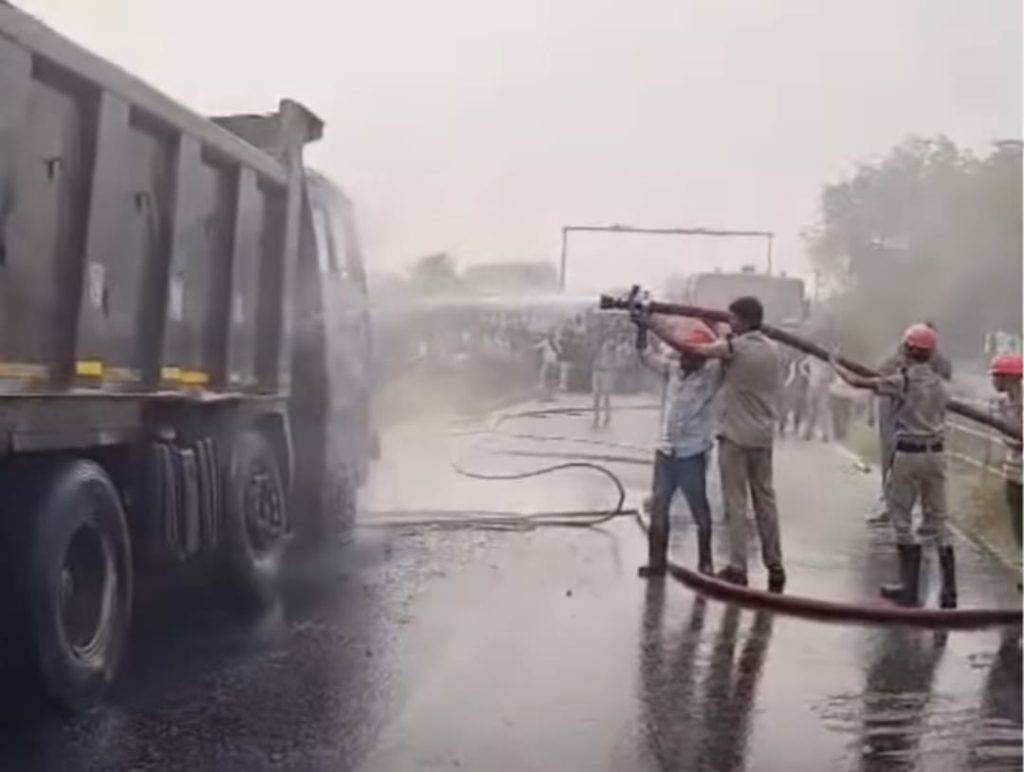 મળતી માહિતી મુજબ, શાકરદા ગામ પાસેથી પસાર થઈ રહેલા ડમ્પરમાં અચાનક શોર્ટ સર્કિટ અથવા અન્ય ટેકનિકલ કારણોસર આગ લાગી હતી. જોતજોતામાં આગે વિકરાળ સ્વરૂપ ધારણ કરી લેતા સમગ્ર ડમ્પર આગની લપેટમાં આવી ગયું હતું. હાઈવે પર ધુમાડાના ગોટા જોવા મળતા વાહનચાલકોમાં ફાળ પડી હતી અને લોકોના ટોળેટોળા ઉમટી પડ્યા હતા.