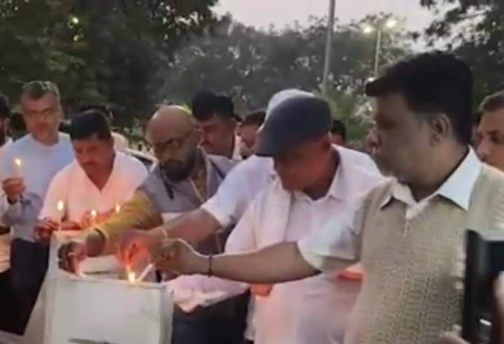 વડોદરા મહાનગરપાલિકાની બેદરકારીના કારણે જીવ ગુમાવનાર માંજલપુર વિસ્તારના આશાસ્પદ યુવાન વિપુલસિંહ ઝાલાના આત્માની શાંતિ માટે આજે કબીર આશ્રમ ખાતે બેસણું યોજાયું હતું. બેસણા બાદ પરિવારજનો, સ્થાનિકો અને વિપક્ષના અગ્રણીઓએ કેન્ડલ માર્ચ યોજી મૃતકને શ્રદ્ધાંજલિ અર્પી હતી અને જવાબદાર અધિકારીઓ સામે કડક કાર્યવાહીની માંગ સાથે ન્યાયની પોકાર કરી હતી.
