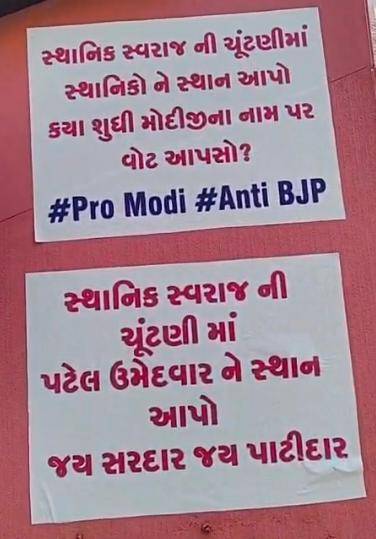 લાલગુરુ સર્કલ પાસે લગાવવામાં આવેલા આ પોસ્ટરોમાં સીધો સવાલ કરવામાં આવ્યો છે કે, “સ્થાનિક સ્વરાજ્યની ચૂંટણીમાં સ્થાનિક નેતાઓને ક્યાં સુધી ઊભા રાખી અને વડાપ્રધાન નરેન્દ્ર મોદીના નામે વોટ માંગશો?” પોસ્ટરોમાં સ્પષ્ટપણે લખવામાં આવ્યું છે કે હવે પાટીદારોને તક આપો અને પાટીદાર ઉમેદવારોને ટિકિટ આપી તેમને વિજેતા બનાવો.