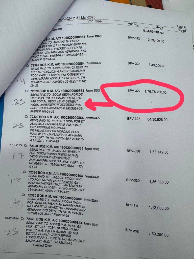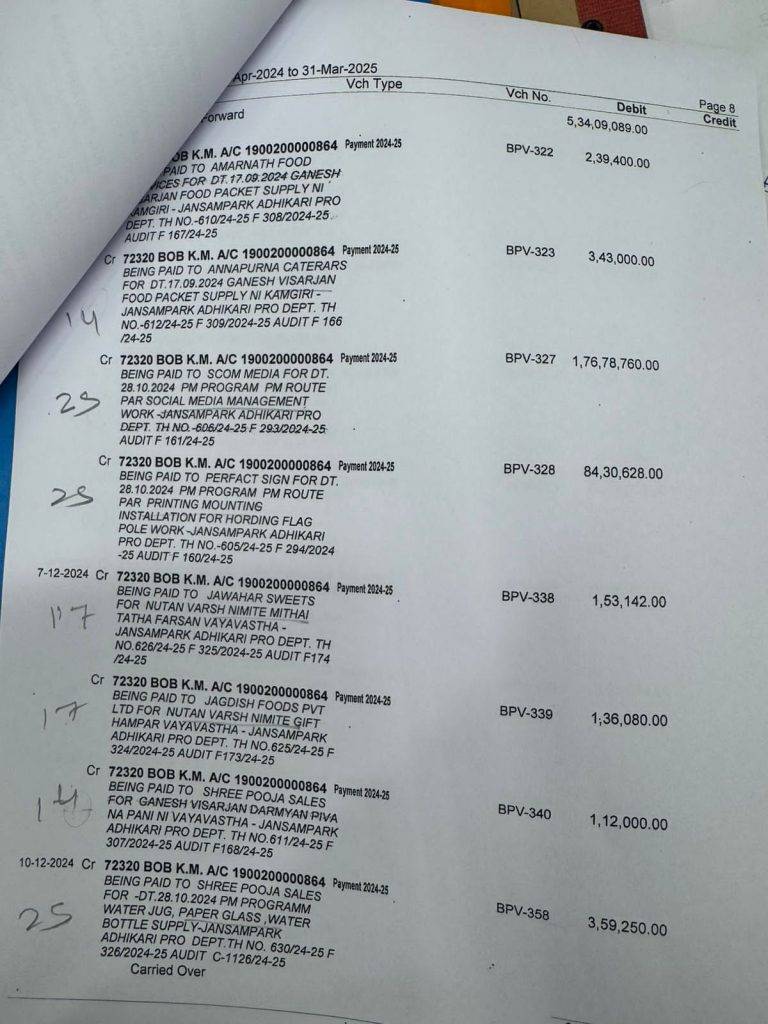 ​વડાપ્રધાનના 28 ઓક્ટોબરના રૂટ વ્યવસ્થાના વાઉચરમાં ₹1,76,00,000ની રકમ સ્પષ્ટ દેખાય છે, પરંતુ આ રકમનો ખરો લાભાર્થી કોણ છે તે એક રહસ્ય છે. સરકારી ચોપડે નોંધાયેલા આ ખર્ચમાં કોઈ એજન્સીનું નામ ન હોવું એ વહીવટી ક્ષતિ છે કે પછી જાણીજોઈને કરવામાં આવેલી ગોઠવણ? કમિશનરના એકાઉન્ટમાંથી આટલી માતબર રકમ રીલીઝ થતા હવે આ મામલે ઉચ્ચસ્તરીય તપાસની માંગ ઉઠી રહી છે.