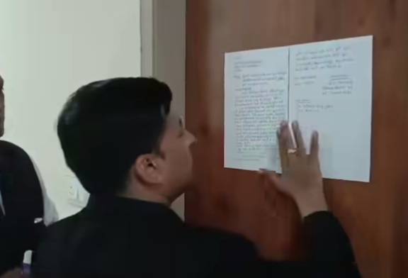 ચૂંટણી કમિશનર હાજર નહી મળતા અરજી તેમની કેચરીના દરવાજે ચોટાડાઇ